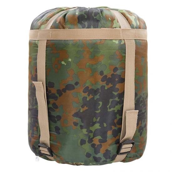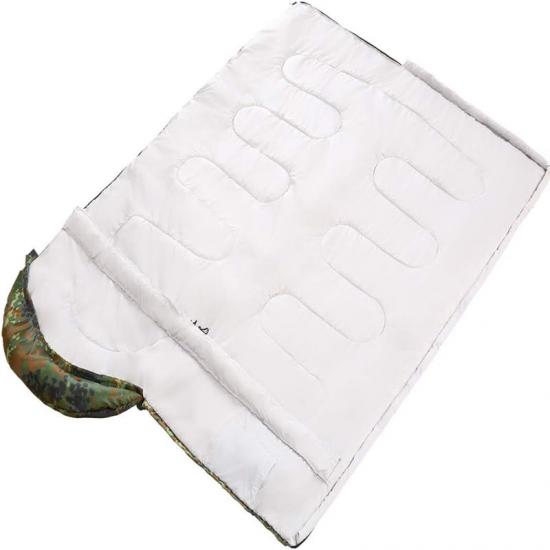 Bahan pengisi beg tidur kilang China ialah gentian poliester 400 GSM dengan penarafan suhu 20 darjah Fahrenheit. Anda boleh memilih biru langit, kelabu gelap, merah, corak penyamaran di zip sebelah kiri, oren ungu, hijau, hijau tentera di zip sebelah kanan.