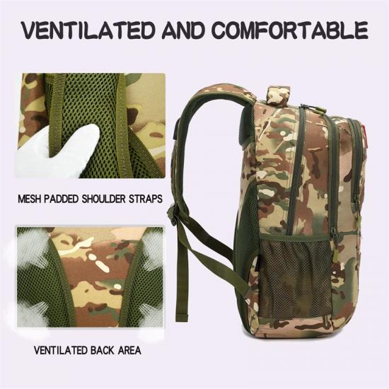 Beg galas ini menawarkan kapasiti besar dengan berbilang petak untuk penyimpanan tersusun. Ia direka dengan gaya taktikal dan menampilkan titik harga yang rendah, menjadikannya pilihan yang berpatutan bagi mereka yang memerlukan beg galas berkapasiti tinggi.