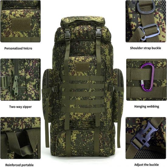 Harga Berpatutan Kualiti Baik Beg galas kalis air 70L Tahan calarBeg galas ini diperbuat daripada bahan kain Oxford 900D berkualiti tinggi, yang tahan lasak dan boleh menahan beban yang berat. Direka dengan tali ergonomik dan panel belakang berlapik, ia memastikan keselesaan maksimum walaupun membawa beban berat.