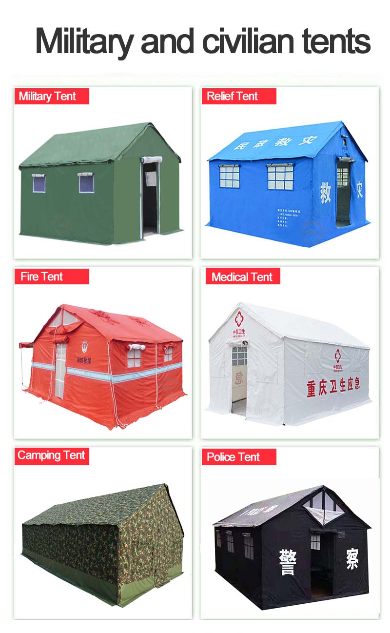 Disesuaikan untuk bantuan bencana kecemasan, penggunaan ketenteraan, perkhidmatan perubatan, derma Pertubuhan Bangsa-Bangsa Bersatu, rizab kerajaan dan operasi Palang Merah, khemah ini adalah lambang kebolehpercayaan. Dibina dengan bahan yang teguh dan tahan lama, ia tahan terhadap keadaan cuaca yang melampau. Menawarkan pelbagai jenis warna untuk memadankan keperluan khusus anda, persediaan mudahnya membolehkan pemasangan pantas dalam situasi yang mendesak. Bahagian dalaman yang luas selesa memuatkan ramai orang dan bekalan penting, menjadikannya penyelesaian penting dan serba boleh untuk sebarang krisis, sama ada ia menyediakan perlindungan bagi mereka yang terjejas akibat bencana alam atau pangkalan berfungsi untuk pasukan perubatan dalam persekitaran yang mencabar.