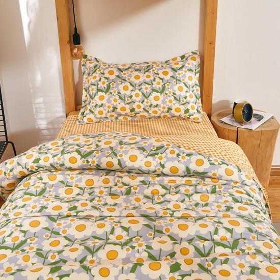 Tersedia Set Sarung Set Tempat Tidur Kapas yang Dibasuh Lembut Bernafas,● 3 PCS : 1 sarung bantal dan cadar rata serta Sarung Duvet,