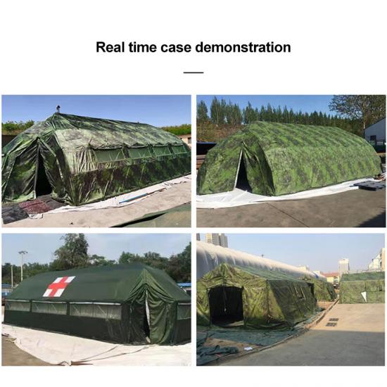 Khemah ini diperbuat daripada bahan kalis air berkekuatan tinggi, yang boleh menahan hujan dengan berkesan, menyediakan tempat tinggal dan persekitaran kerja sementara yang selamat dan selesa untuk mangsa bencana dan pekerja penyelamat |