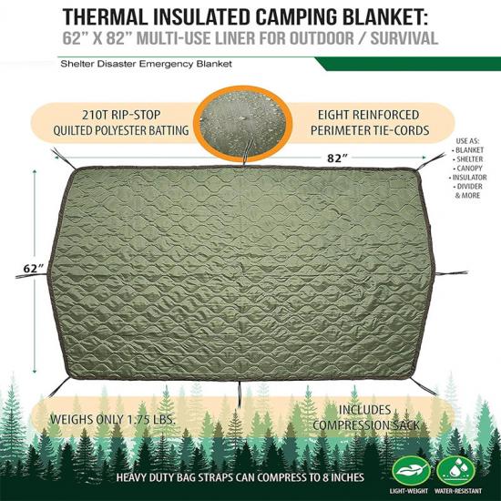 Aid Rain poncho liner Fabrik murah: Sebagai tambahan kepada fungsi asas untuk mengekalkan kehangatan dan menahan kebanyakan unsur cuaca, ia juga boleh digunakan sebagai khemah kelangsungan hidup sementara yang cepat kering, awning, penebat buaian, bantal, sekatan khemah, skrin privasi, alat pembawa kecemasan, bantuan bencana, bunker tersembunyi, membawa beg tangan, beg tidur atau penebat khemah dan kegunaan lain untuk pelbagai tujuan.