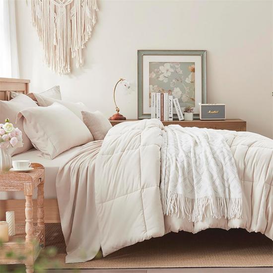 J: Peralatan Tempat Tidur Derma Amal Berkualiti Tinggi diperbuat daripada tampalan alternatif ke bawah dengan ketumpatan 270 gsm, dan ia direka menggunakan fabrik berkualiti tinggi yang memastikan umur panjang dan keselesaan.
