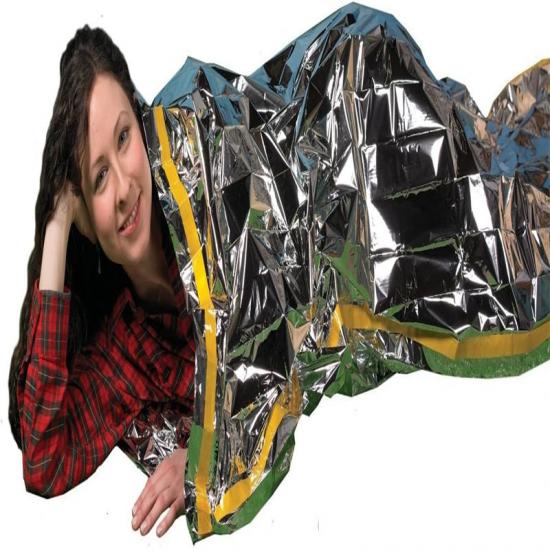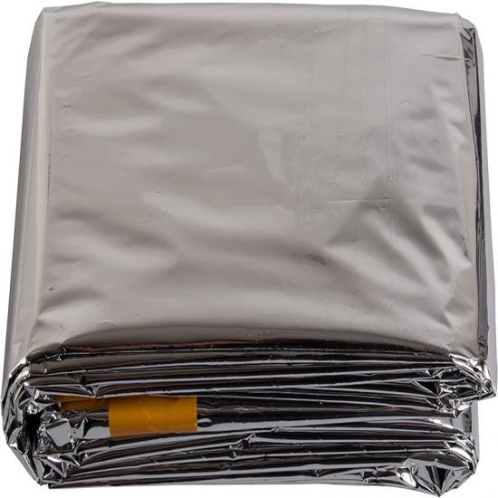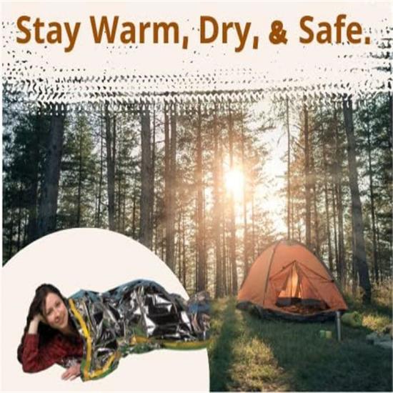 Diperbuat daripada poli filem poliester aluminiasi berkualiti tinggi, beg tidur bertebat membantu mengekalkan sehingga 90% haba badan anda semasa kecemasan.
