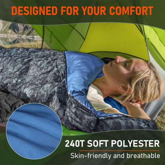 Alas beg tidur yang hangat atau tempat tidur bantuan banjir tenteraRASAI PERBEZAANNYA - YRF Sangat Selesa Beg Tidur Dengan Tudung Ridge direka untuk memastikan bahawa selepas seharian menjejak, mendaki, mengembara atau apa-apa penerokaan lain, anda boleh mendapatkan tidur malam yang nyenyak dan santai. Reka Bentuk Kawalan Gulung menjadikan lipatan cepat dan mudah, Zip dua bersama untuk menggandakan bilik.