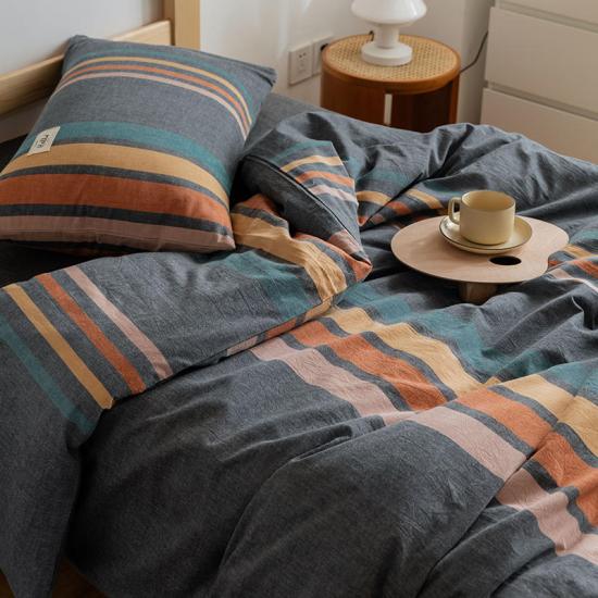 Katun Linen Katil Bilik Asrama YRF, kedua-dua sisi dengan keanggunan padu diilhamkan oleh gaya hidup minimalis dan kelihatan