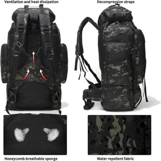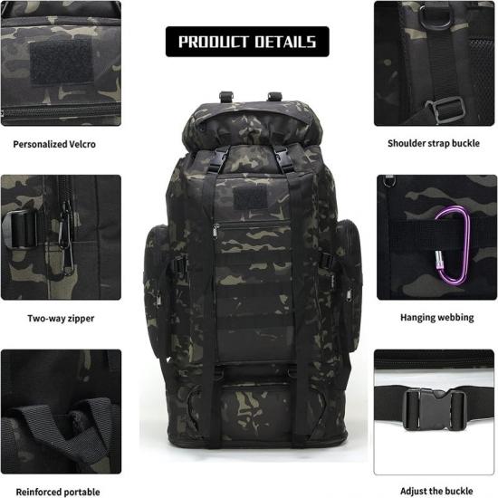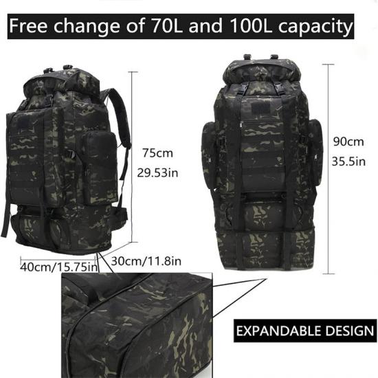 Beg galas ini diperbuat daripada fabrik Oxford 900D yang tahan lama, yang boleh menahan beban berat. Dengan kapasiti 70L, ia mempunyai ruang yang cukup untuk menampung semua peralatan dan keperluan anda.