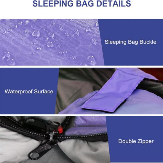 Beg Tidur Kalis Air 1.8 kg / 3.96 lbs mempunyai ritsleting dua sisi berkualiti tinggi yang tidak boleh disambungkan, dan kaki mempunyai zip untuk melaraskan jumlah udara panas atau sejuk yang masuk atau keluar dari beg. Anda juga boleh menggunakan beg tidur yang terbuka sepenuhnya sebagai selimut, yang meningkatkan kefleksibelan penggunaannya.