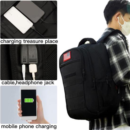 Tali Ransel Produk Kecemasan Luaran Bantuan Banjir dilengkapi dengan port USB dwi-port dengan kabel pengecas terbina dalam, menjadikannya mudah untuk mengecas telefon bimbit anda walaupun anda berada di luar rumah. Sementara itu, bicu fon kepala dan port USB direka bentuk sebelah menyebelah.
