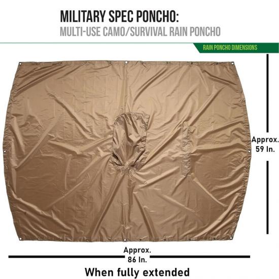 J: Penarafan kalis air pelapik poncho 3000mm berukuran kira-kira 59" lebar dan 86" panjang keseluruhan.