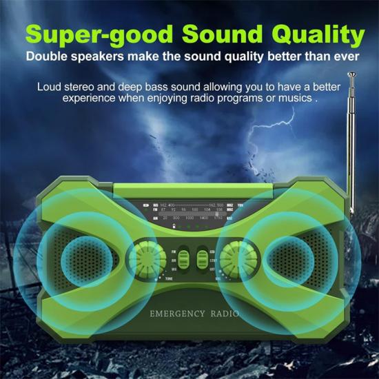 Radio yang menyelamatkan nyawa ini lebih daripada radio ringkas, Radio Bantuan Banjir tahan Impak ialah alat kecemasan pelbagai fungsi. Selain menerima siaran pada jalur AM dan FM serta 7 stesen cuaca NOAA, Radio Tahan Lama juga menerima maklumat tentang pelbagai bahaya di kawasan anda, seperti taufan, puting beliung, banjir dan banyak lagi. Sekiranya berlaku kecemasan, hanya tekan butang SOS dan radio akan memancarkan amaran dan lampu amaran SOS, memberi anda masa menyelamat yang berharga.