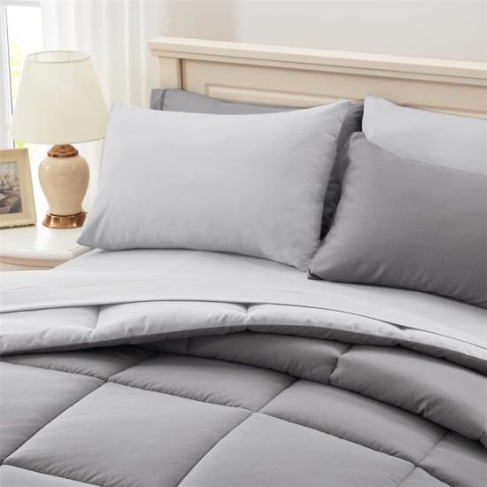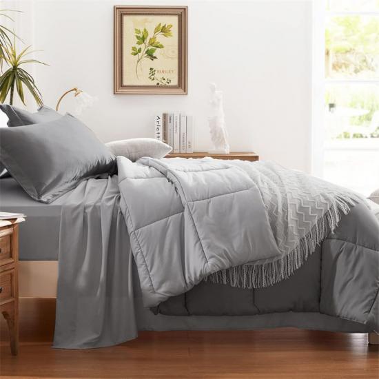 Set Sarung Duvet Tempahan Stok Kerajaan yang Lembut termasuk 1 comforter 230x260sm, 2 Shams Bantal 50x90sm, 1 Cadar Rata 270x260sm, 1 Cadar Dilengkapi 200x200+35sm dan 2 Sarung Bantal 50x100sm. Reka bentuk quilting persegi klasik bukan sahaja cantik dan murah hati, tetapi juga berkesan dalam mencegah anjakan dan aglomerasi pengisian. Ia tidak akan mengelupas selepas dicuci, dan kekal sebagai baru untuk masa yang lama.