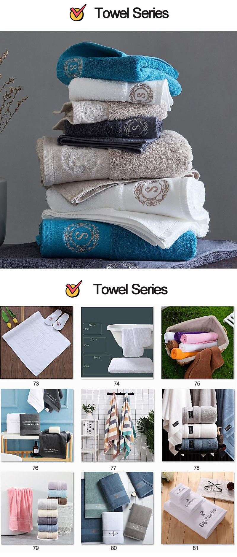 ● Menyediakan tuala dalam pelbagai warna, tekstur dan reka bentuk.