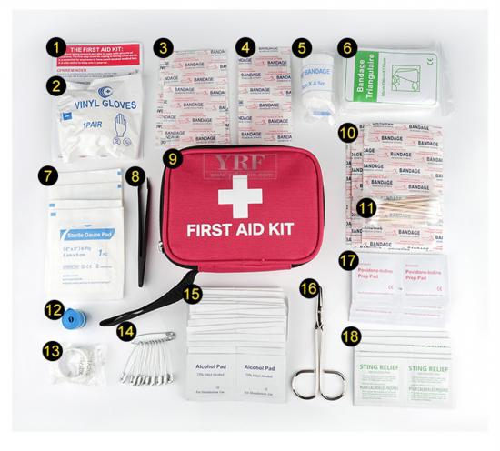 Kit Pertolongan Cemas Komprehensif- Beg Pertolongan Cemas Sukan Kami mengandungi 18pcs bekalan pertolongan cemas berkualiti tinggi untuk merawat luka biasa, calar, sakit kecil dan kecederaan, perlindungan maksimum untuk keperluan perubatan penting dalam kehidupan seharian dan pengembaraan luar. Sesuai untuk berkhemah mendaki backpacking, pengembaraan liar dan aktiviti luar yang lain.