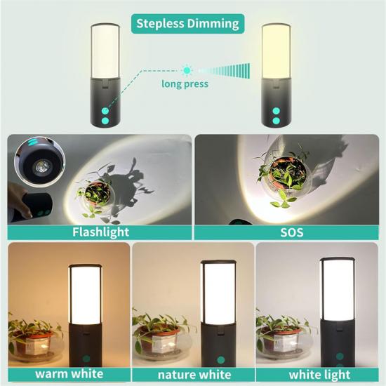 A: Lampu Kecemasan Boleh Laras Tentera menawarkan peredupan tanpa langkah, boleh laras daripada kecerahan 0-100%, dan 5 mod pencahayaan: putih hangat, cahaya putih, warna campuran, lampu suluh dan berkelip.