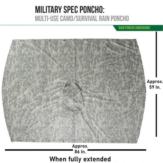 Projek Poncho Liner Engineering Rain Construction Sp ecifications : Dibina daripada poliester ripstop berketumpatan tinggi 210T dan fabrik bersalut poliuretana, poncho hujan ini mempunyai penarafan kalis air 3000mm yang sangat baik. Poket pembawa lebar 6 inci cukup lebar untuk memuatkan pelbagai barangan, manakala panjang keseluruhan 86 inci cukup lebar untuk memuatkan beg galas yang lebih besar. Hud tali serut boleh laras dan lapan grommet logam tugas berat memberikan fleksibiliti dan kemudahan kepada pengguna. Dengan jumlah berat 18 auns, ia sederhana berat dan mudah dibawa.