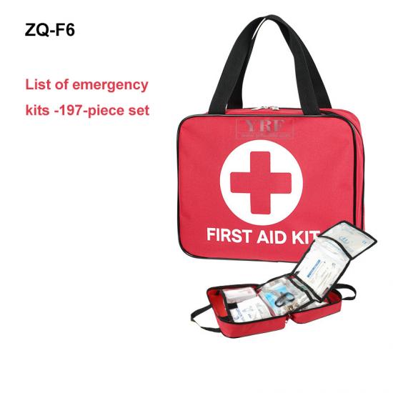 Pad kasa (saiz 2) *4, Alas mata *2, Tablet Iodophor *100, Kit kecemasan *1, Band-aid *20, Beg kapas swab *2, Pek ais *1, pita PBT *4, Topeng N5 *5, Gunting *1, Tablet alkohol *50, Pembasmi kuman, sarung tangan kosong PVC *2, Sarung tangan kosong PVC *2 *2