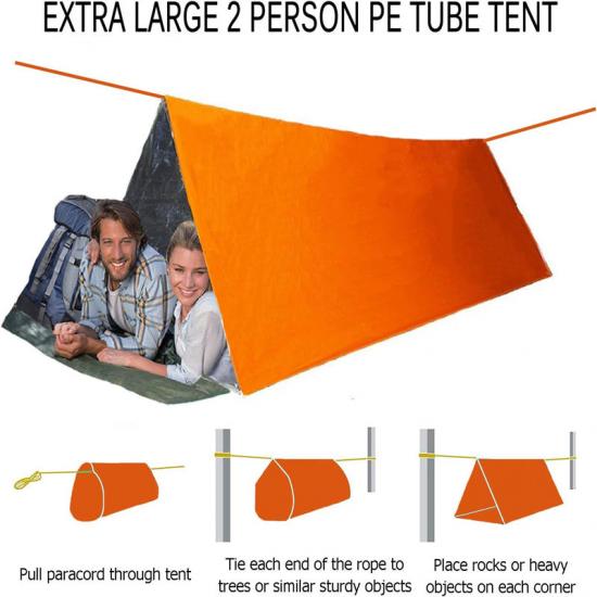 Khemah tahan lasak dan lasak diperbuat daripada bahan PE dengan sistem talian hayat. Ia adalah produk kecemasan yang sangat baik untuk aktiviti luar dan situasi kelangsungan hidup.