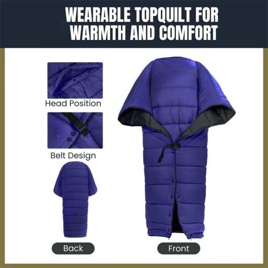 Beg tidur Peralatan ringan boleh digunakan sebagai ponco ringan hangat yang boleh dipakai dan sebagai lapisan luar penebat tambahan apabila berehat berhampiran kem atau dalam musim sejuk Wild musim sejuk.