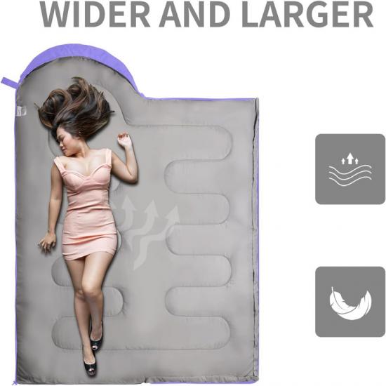 400GSM Good Price sleeping bag reka bentuk zip kaki belah kaki, mudah meregangkan kaki, tidak takut tersumbat. Atau zip ke atas untuk kekal hangat dan selesa. Pada masa yang sama, beg tidur dihasilkan dengan teknologi canggih, selesa dan mesra kulit, tidak perlu risau tentang angin sejuk. Beg tidur dibuka pada 361° dan boleh digunakan sebagai selimut atau tikar lantai, yang mudah dan praktikal. Selain itu, salutan permukaan beg tidur ialah sebatian molekul kering yang kalis air, bernafas dan tahan lembapan, membolehkannya kekal kering dan selesa dalam pelbagai persekitaran.