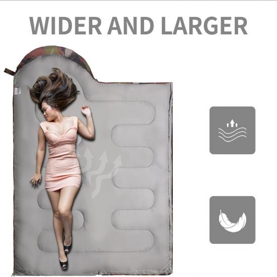 REKA BENTUK MANUSIA: Beg tidur dibahagikan kepada reka bentuk zip kaki, yang mudah untuk meregangkan kaki anda dan tidak takut panas tersumbat. Atau zipkannya untuk kekal hangat dan selesa.