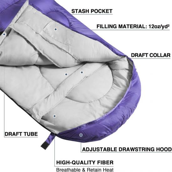 Beg Tidur Penebat poliester Rizab Stok KerajaanRASAI PERBEZAANNYA - YRF Sangat Selesa Beg Tidur Dengan Tudung Ridge direka untuk memastikan bahawa selepas seharian menjejak, mendaki, mengembara atau apa-apa penerokaan lain, anda boleh mendapatkan tidur malam yang nyenyak dan santai. Reka Bentuk Kawalan Gulung menjadikan lipatan cepat dan mudah, Zip dua bersama untuk menggandakan bilik.