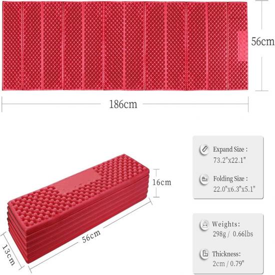 A: Relief Rescue Foam Sleeping Pad Saiz 73.2x22x0.59 inci (186x56x1.5cm), sesuai untuk dibawa.