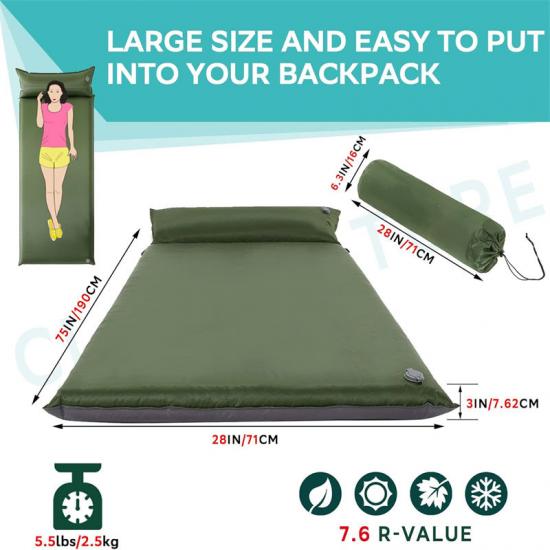 Kami mengesyorkan meniup pad tidur secara manual pada penggunaan pertama untuk mengaktifkan busa memori untuk mengembang sepenuhnya.