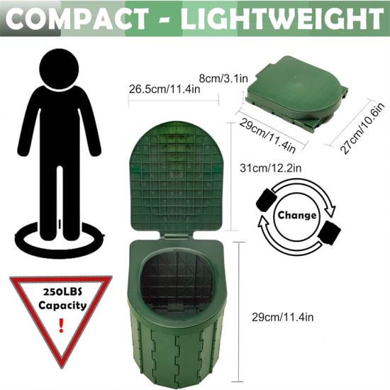 Tandas Ringan Dengan Beg Boleh Ganti ini lebih daripada sekadar tandas, ia juga boleh digunakan secara pelbagai fungsi sebagai storan dan gabungan tandas, tong sampah, najis kecil, kotak penyimpanan dan banyak lagi. Dengan binaannya yang kukuh, ia berasa sangat stabil walaupun seseorang yang beratnya kurang daripada 200 lbs/90kg duduk di atasnya. Apabila anda perlu berehat atau menyimpan barang-barang anda, ia telah melindungi anda.