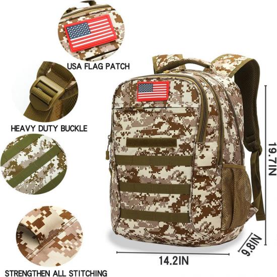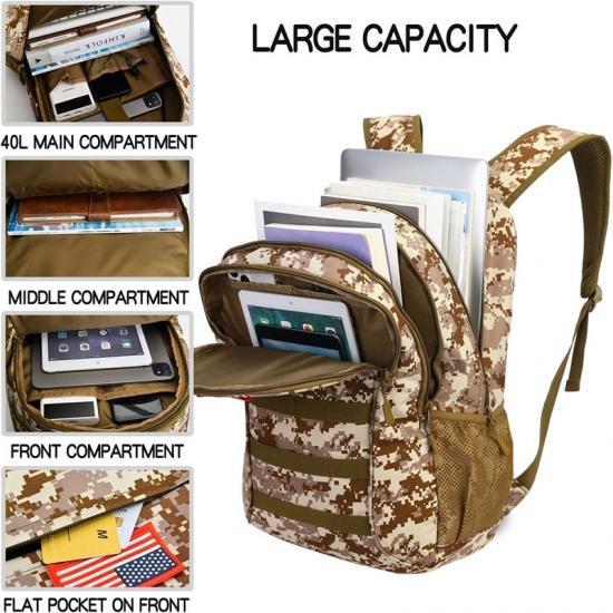 Beg galas ini menawarkan kapasiti besar dengan berbilang petak untuk penyimpanan tersusun. Ia direka dengan gaya taktikal dan menampilkan titik harga yang rendah, menjadikannya pilihan yang berpatutan bagi mereka yang memerlukan beg galas berkapasiti tinggi.