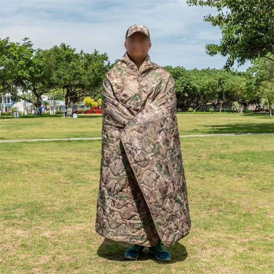 Kehangatan selimut Poncho penyamaran ini diperbuat daripada bahan ripstop 210T dengan isi kapas yang disembur, berukuran kira-kira 55x78.7 inci yang dibentangkan dalam pelapik poncho kecemasan, dan berat 1.63 lbs. Selimut boleh dimampatkan sepenuhnya ke dalam guni mampatannya untuk mudah dibawa dan disimpan, mengurangkan ruang dan pukal. Ini adalah pelapik poncho pelbagai guna dengan tahap utiliti yang tinggi.